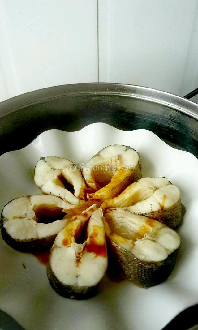 5.锅里加水,热水上蒸笼,把腌制好的鱼块装盘上蒸笼