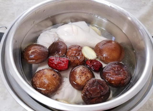 4.除了盐全部放入电饭锅中,倒足量的水和少许米酒选择煮饭程序,煮好后加入适量的盐调味再焖15分钟