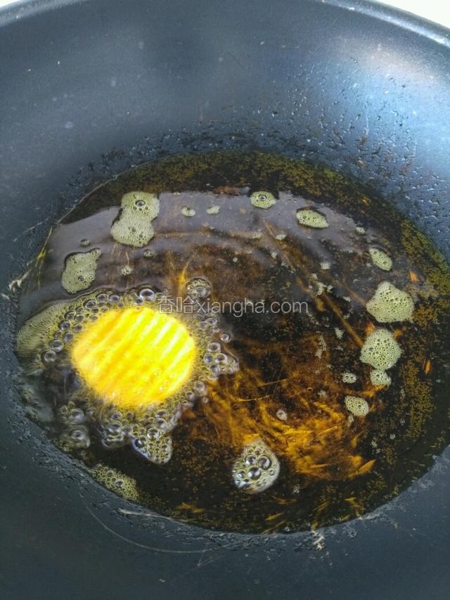 6.炸至两面金黄即可捞出控油,加上少许黄瓜进行装饰