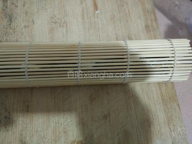 4.把紫菜放到寿司竹帘上,粗糙的一面朝上