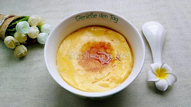 5.放入微波炉定时五分钟,蛋羹就做好了,又快又方便。