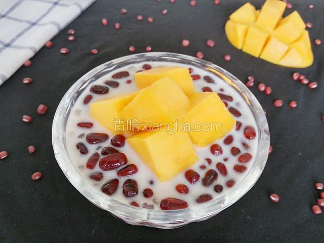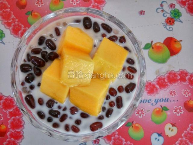 2.红豆是提前加冰糖熬制的,放冰糖冷藏随吃随取