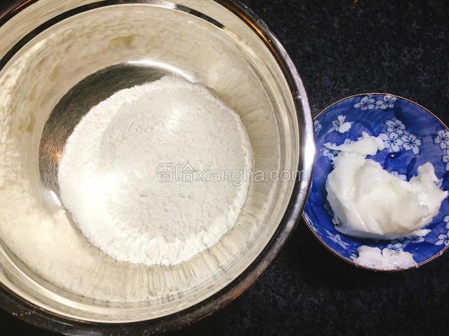 4.中式酥皮:油酥准备材料,中筋面粉、猪油。