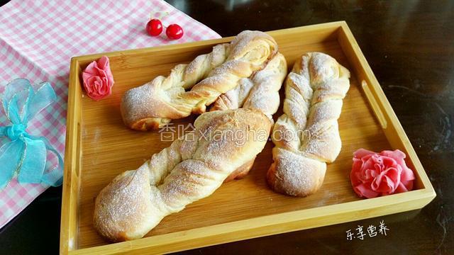 1.面粉称重混合加入糖,盐,酵母,奶粉放入面包机中