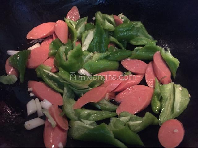 4.加入青椒翻炒至青椒八成熟