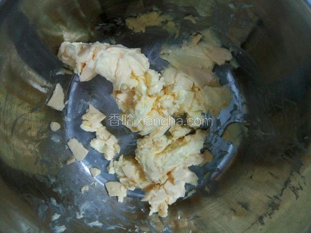 2.奶酪和黄油软化电动搅拌器搅拌。