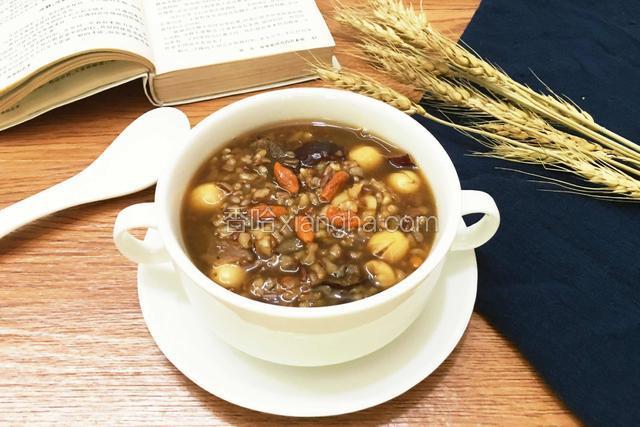 5.再倒入适量的清水,把泡发好的莲子一起倒入锅中。