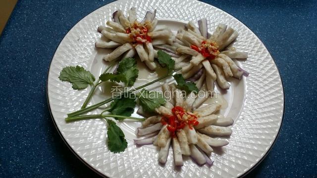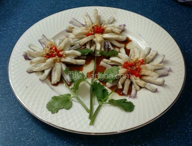 6.爆香的油淋上花中間~再放入美極鮮醬油~即可吃