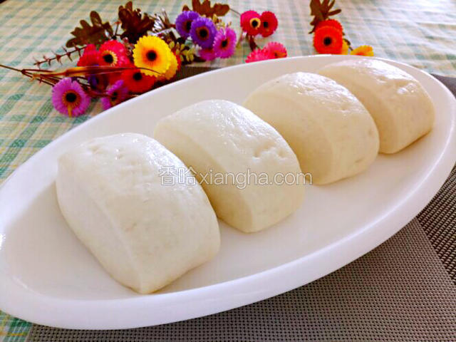 5.发酵好的面放在面案上,用适量的干面粉和一下