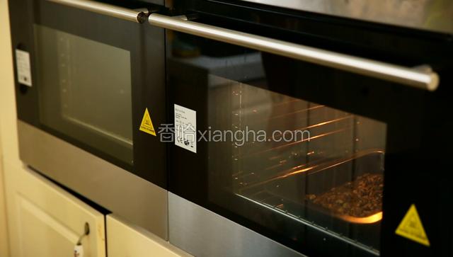 2.烤核桃,把核桃倒在烤盘上,掰碎。165度烤15分钟,烤到核桃表面微微发黄。
