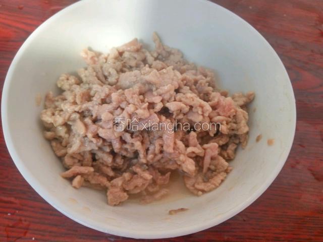 4.肉丝放碗内,放少许盐和料酒腌制十五分钟