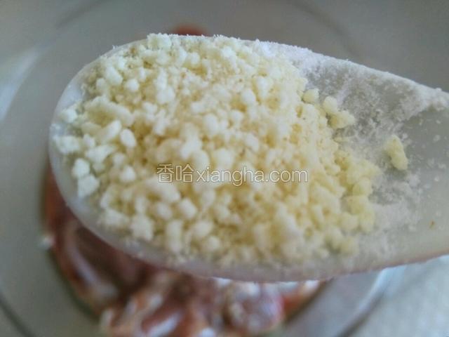 3.然后捏干水份,放一大碗里在打一个蛋白进去。