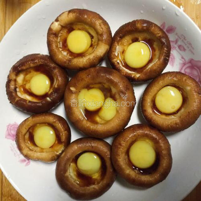 5.将鹌鹑蛋打入香菇中