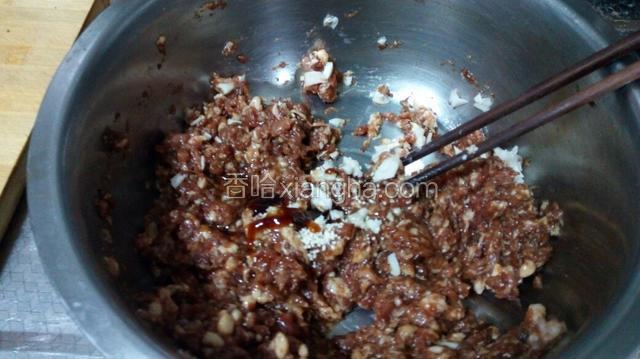 5.加入姜,蚝油,鸡精,香油,盐顺一方向搅拌