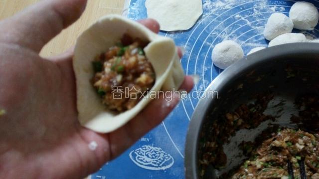 3.猪肉搅成馅放入盆中加入白酒搅拌