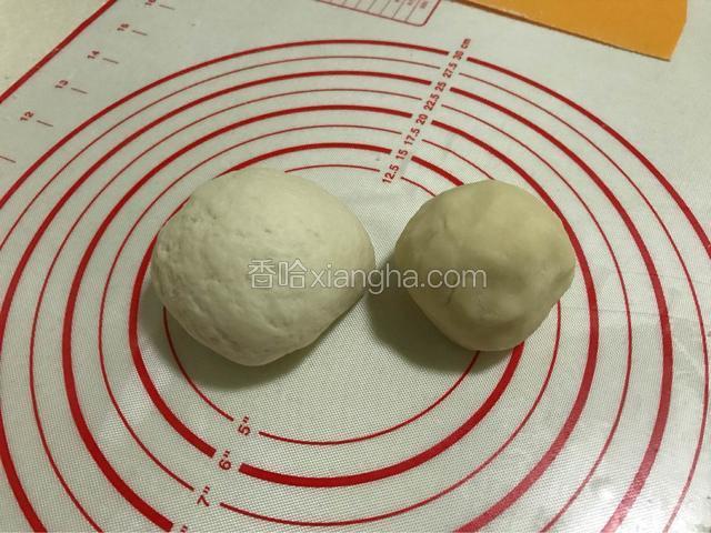 4.油皮,油酥都揉成团,盖上保鲜膜,放置十分钟。