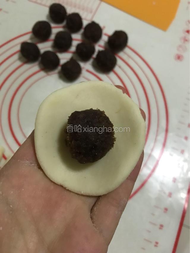 5.豆沙分成12分。这个豆沙有点粘手,过程有点才不忍赌,还好,都凑和成团。