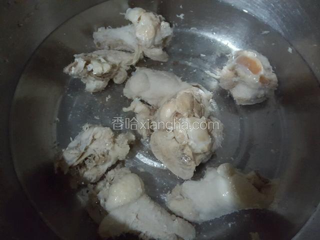 2.把鸡肉剁小块,放入锅中开锅后5分钟就好!