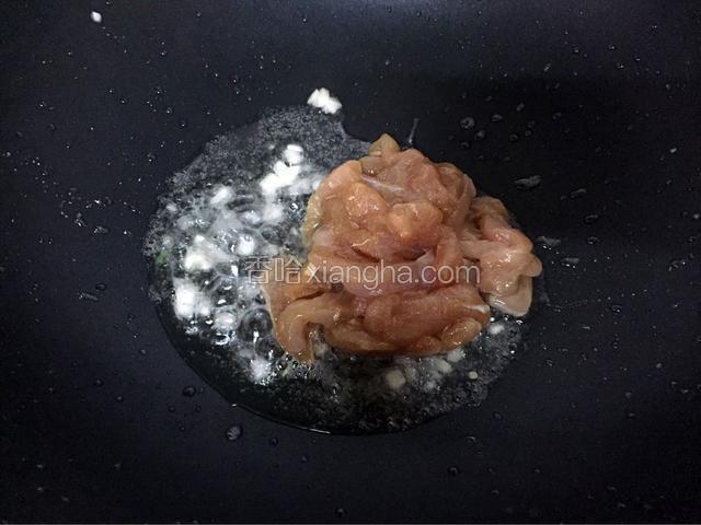 2.锅中倒入适量西王玉米胚芽油烧热后放入蒜末爆香