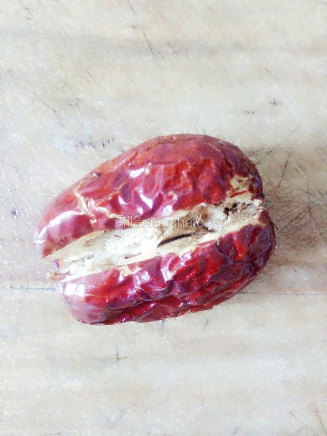 5.去掉枣核的枣,用刀稍微切一下!