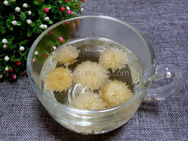 2.用温水把菊花茶泡一会接着把菊花捞出来控水!