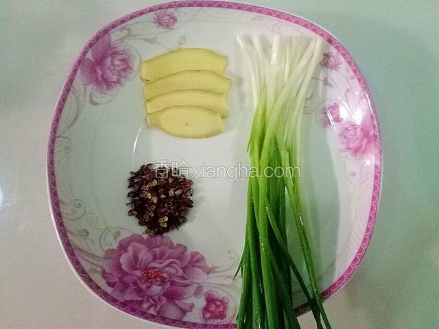 6.将香葱洗净,切成葱花,老姜切成小颗粒,适量的花椒备用。