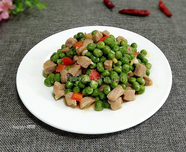 1.准备食材。豌豆清洗干净,猪肉清洗干净切成丁备用。