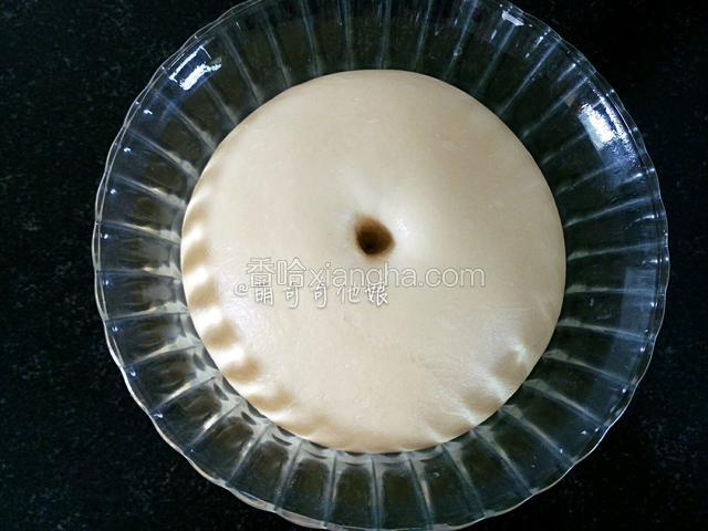 6.发酵至约2.5倍大,手指沾水或干粉探入不回缩不塌陷即发酵完成。