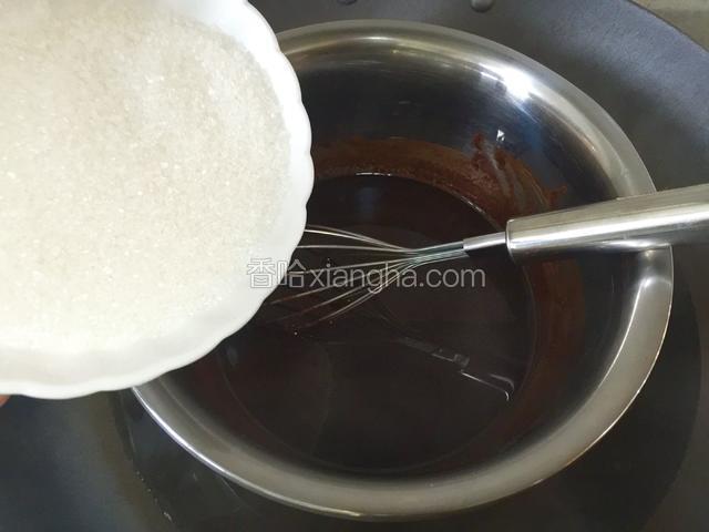 5.再次隔水加热,边加热边搅拌,至糖完全熔化;