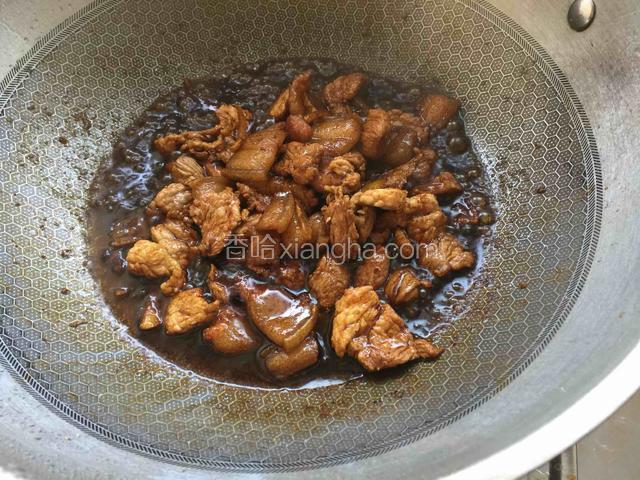 6.加瘦肉翻炒变色加李锦记酱油上色.加八角.加盐加生姜