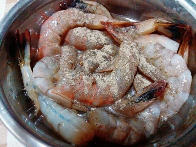 2.虾去头 去皮 去掉虾线 留虾尾 洗净