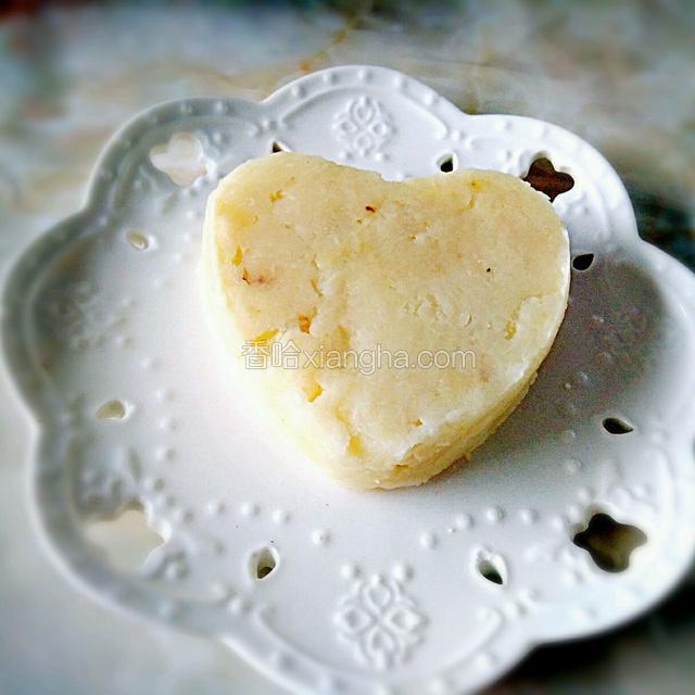 3.山药剥好后用勺子压成山药泥,放入一个磨具中抹平