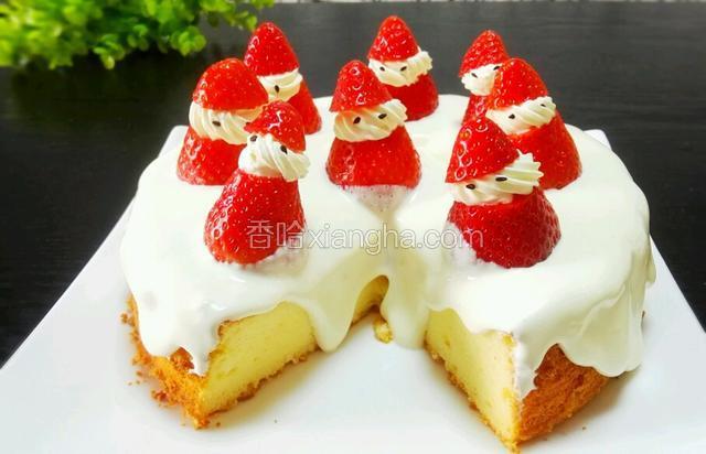 3.草莓切掉蒂,然后在1/3处切断。如图。