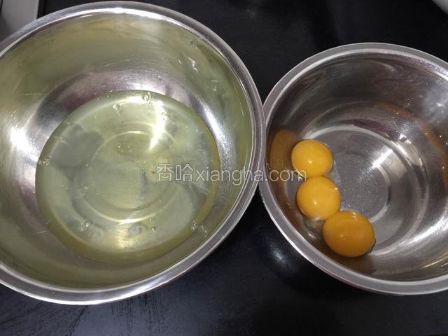 1.取两个无油无水的盆,把鸡蛋分离好。