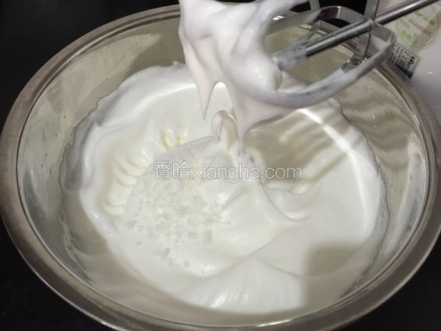 5.蛋白加入柠檬汁用电动打蛋器打发。