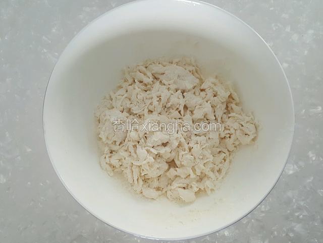 3.将絮状面粉揉成光滑的面团,醒发备用。