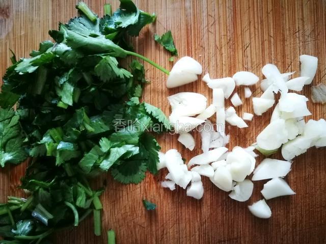 6.将排骨倒入高压锅中,文火压15分钟,等高压锅内气散尽了后,开盖中火收汤,待汤差不多浓缩到一碗汤时,加入香菜蒜,青红椒配色入味,即可出锅