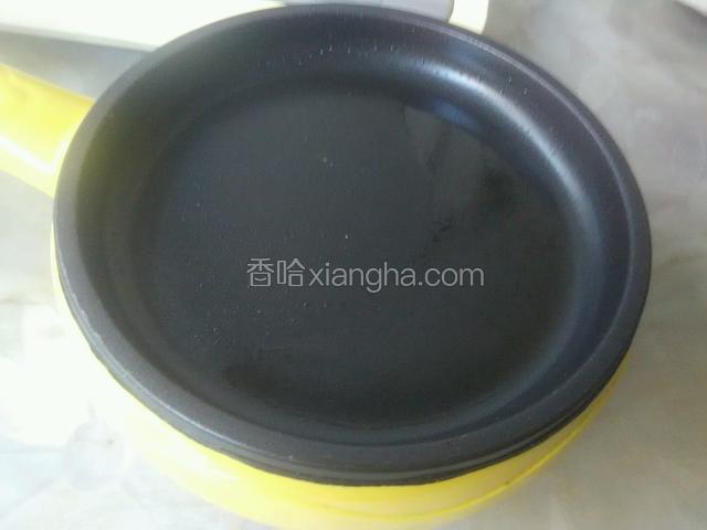 4.那起煎锅转个圈儿,使面糊均匀的铺满煎锅,要是还不均匀的话,就得用锅铲抹平它了。