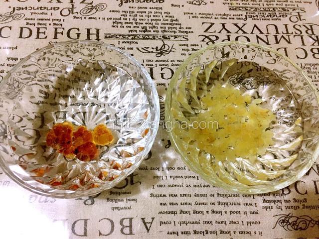 3.皂角米、桃胶、枸杞洗净、银耳洗净切成小块备用