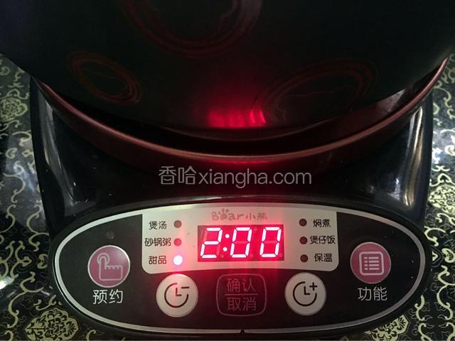 6.启动“甜品”键,时间调整为“2:00”小时,其间记得用勺子来回在锅底穿梭,免得粘底。