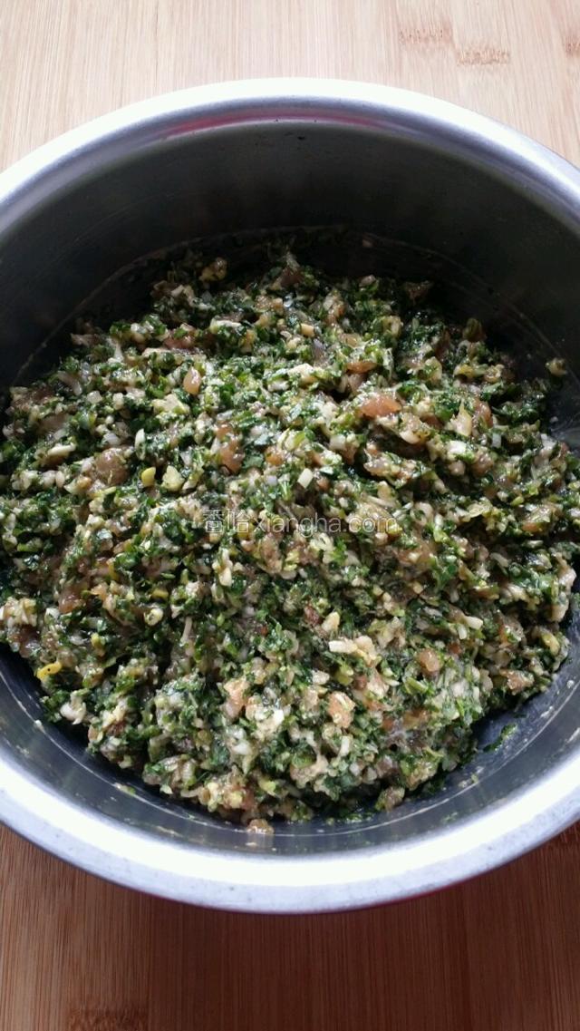 5.放入拌匀的肉馅中,加油,盐搅拌均匀