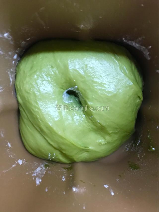 1.全部材料放入面包机揉成面团后再放入黄油继续揉面出手膜,放至发孝成这样,