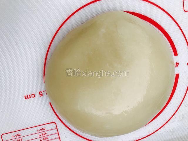 3.蒸好的麻薯料待凉加入软化了的黄油揉成光滑的面团