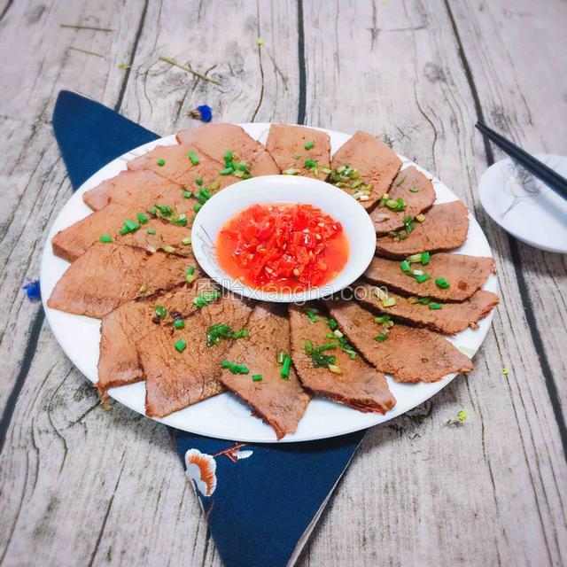 6.捞起沥干冷却后切成薄片,浇上一点酱汁,或用水辣椒蘸着吃,口感也是不错哦