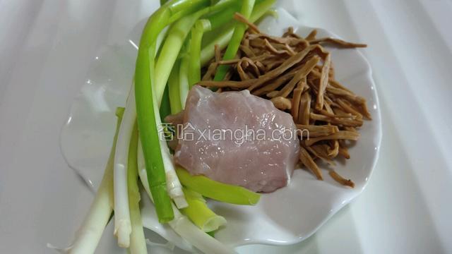 3.把猪瘦肉切成细丝,放入适量水淀粉,拌匀。