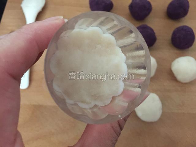 6.先把山药泥放入压实。