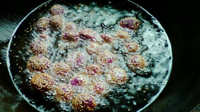 6.将白糖,糯米粉,紫薯,搅拌在一起