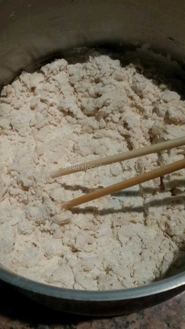 3.揉制成面团,做到三光。盆光,面光,手光,面就揉好了。包保鲜膜醒面20分钟