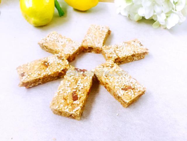 6.压紧实后我洒了层芝麻。进烤箱180度烤温,中层上下火20分钟。