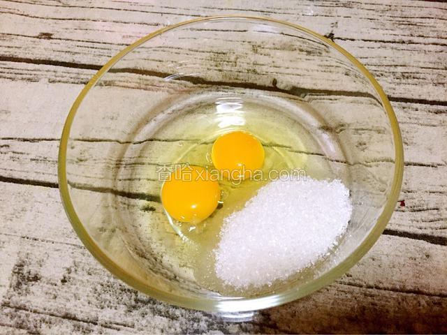5.鸡蛋打入碗中,加入白糖,搅拌均匀